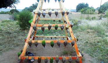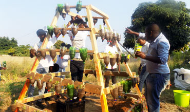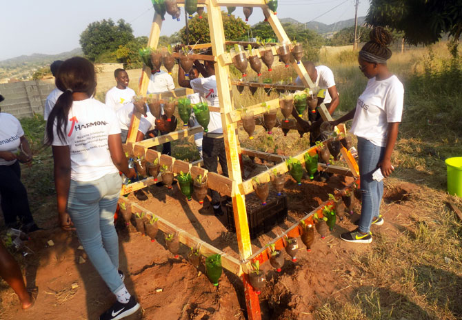 Students getting ready to construct the food garden out of reusable materials